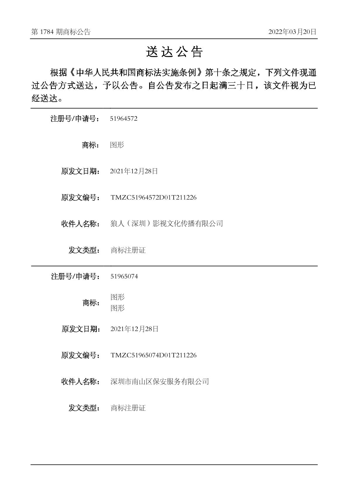 2022-03-22 商标注册申请 | 排版送达公告(商标注册证)