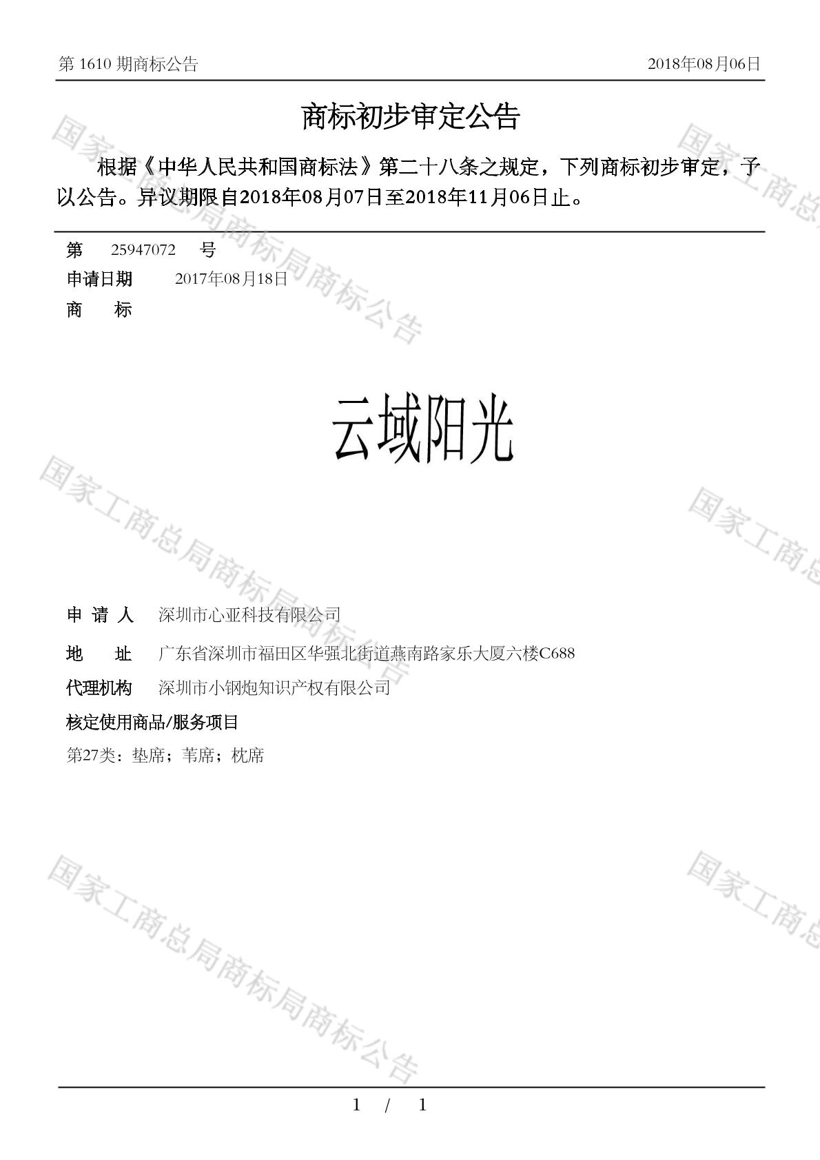 【云域阳光】商标详情