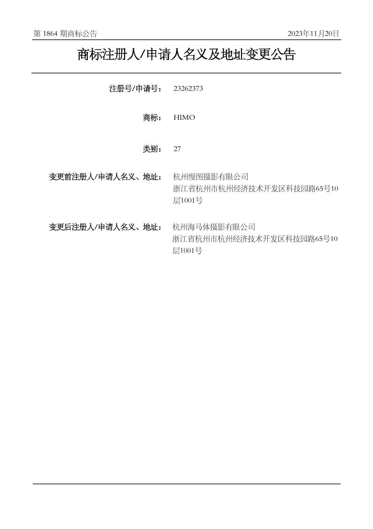 2023-11-02 变更商标申请人/注册人名义/地址 | 申请收文