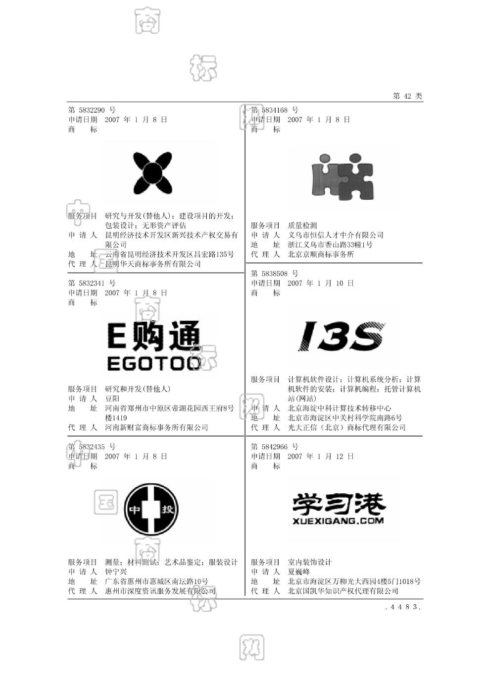 4209-工程;4209-节能领域的咨询;4210-测量;4214-材料测试;4216-工业品外观设计;4217-建设项目的开发;4218-服装设计;4220-计算机软件设计;4224-艺术品鉴定;4227-无形资产评估 - 1207