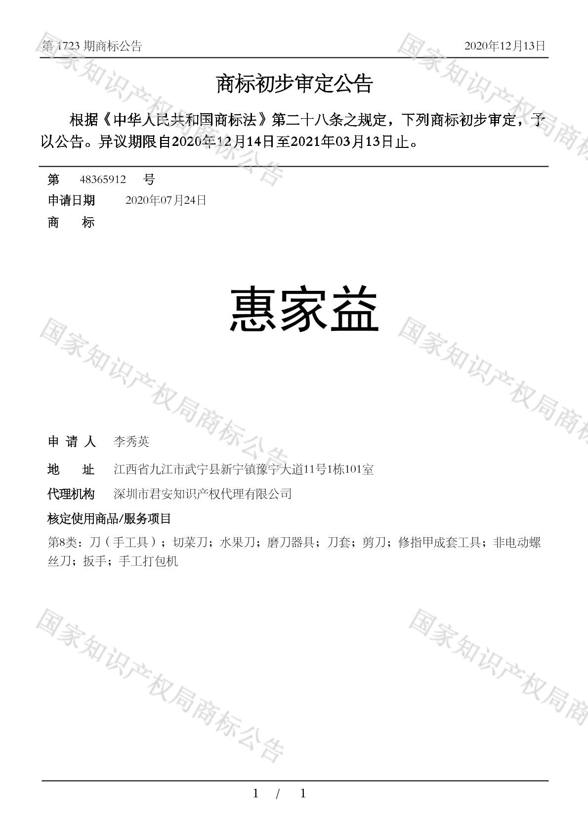 0801-磨刀器具;0806-修指甲成套工具;0807-扳手;0807-非电动螺丝刀;0808-手工打包机;0810-刀套;0810-刀(手工具);0810-切菜刀;0810-剪刀;0810-水果刀 - 1723
