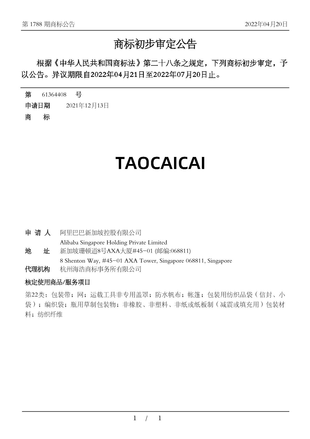 【TAOCAICAI】商标详情
