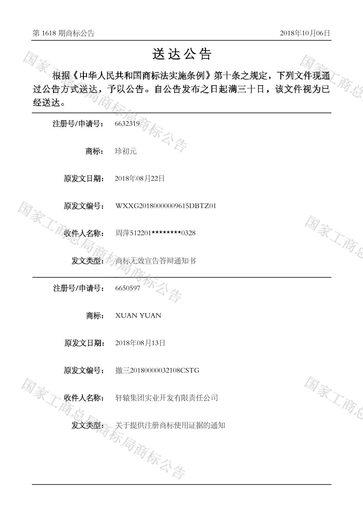 2018-10-13 撤销连续三年停止使用注册商标 | 排版送达公告(关于提供注册商标使用证据的通知)