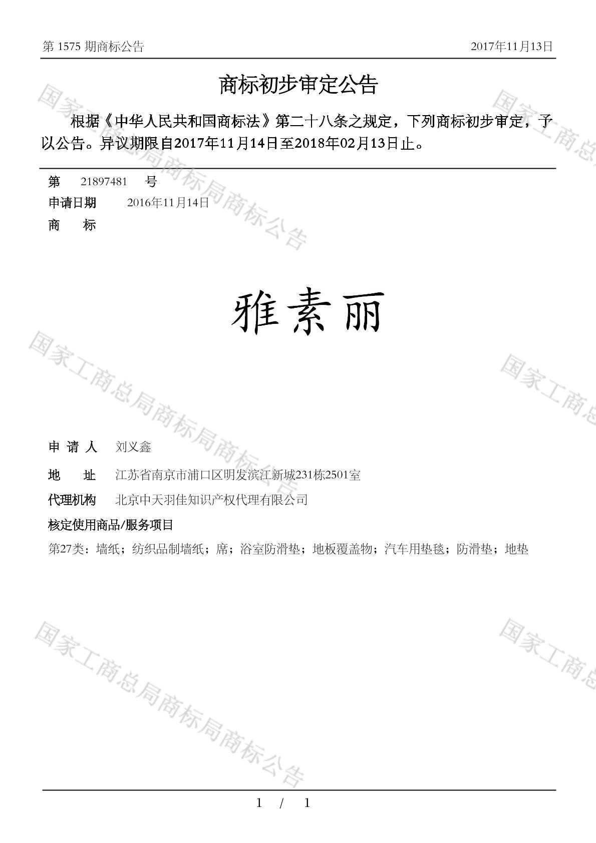 【雅素丽】商标详情