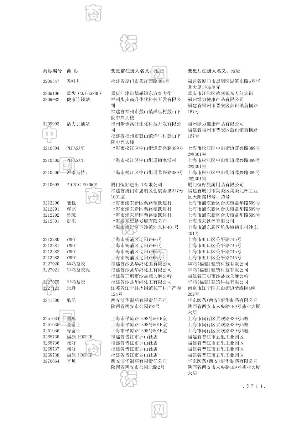 商标注册人申请人名义及地址变更公告 2011-10-13 第1283期 查看公告
