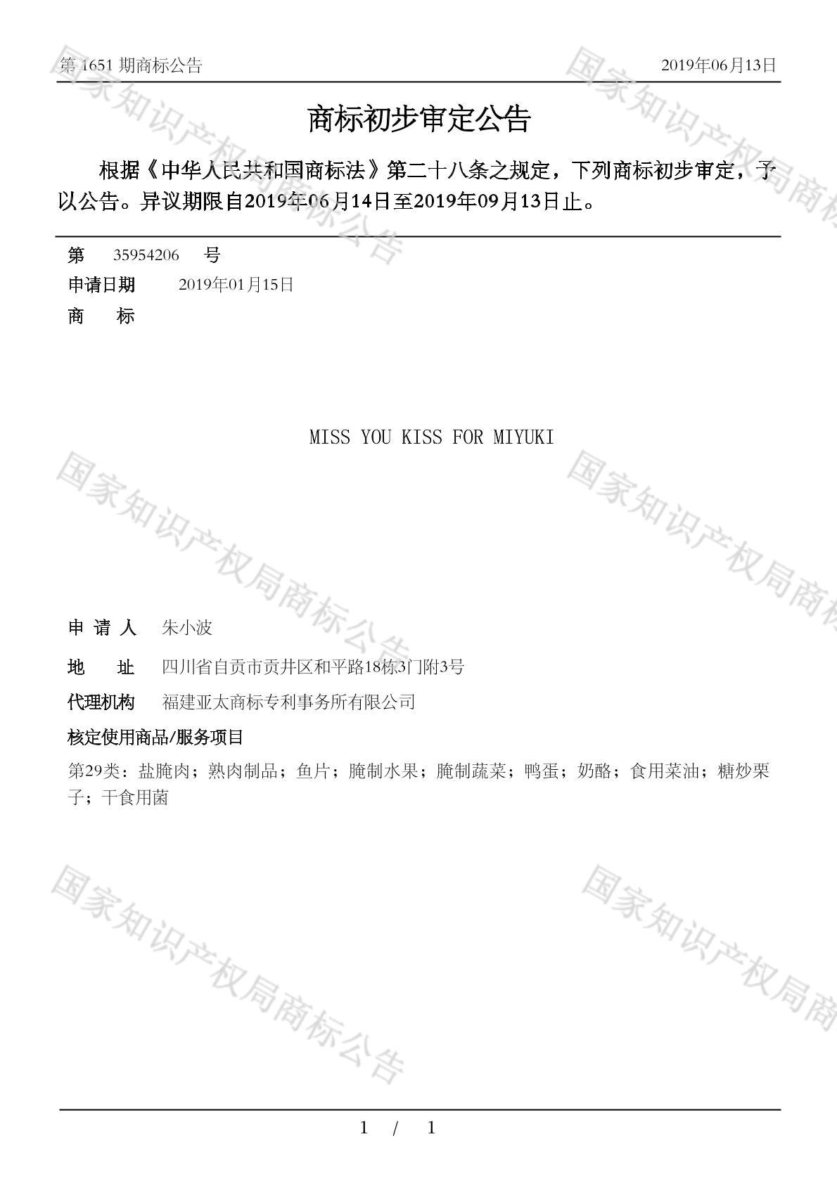 【MISS YOU KISS FOR MIYUKI】商标详情