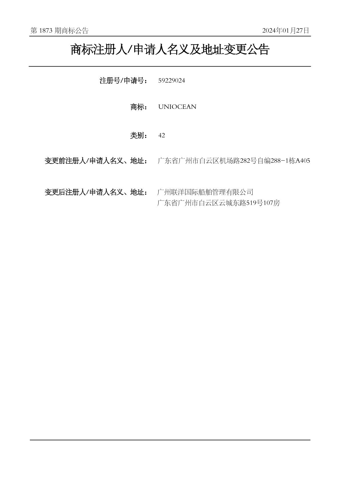 2024-01-27 变更商标申请人/注册人名义/地址 | 核准证明打印发送