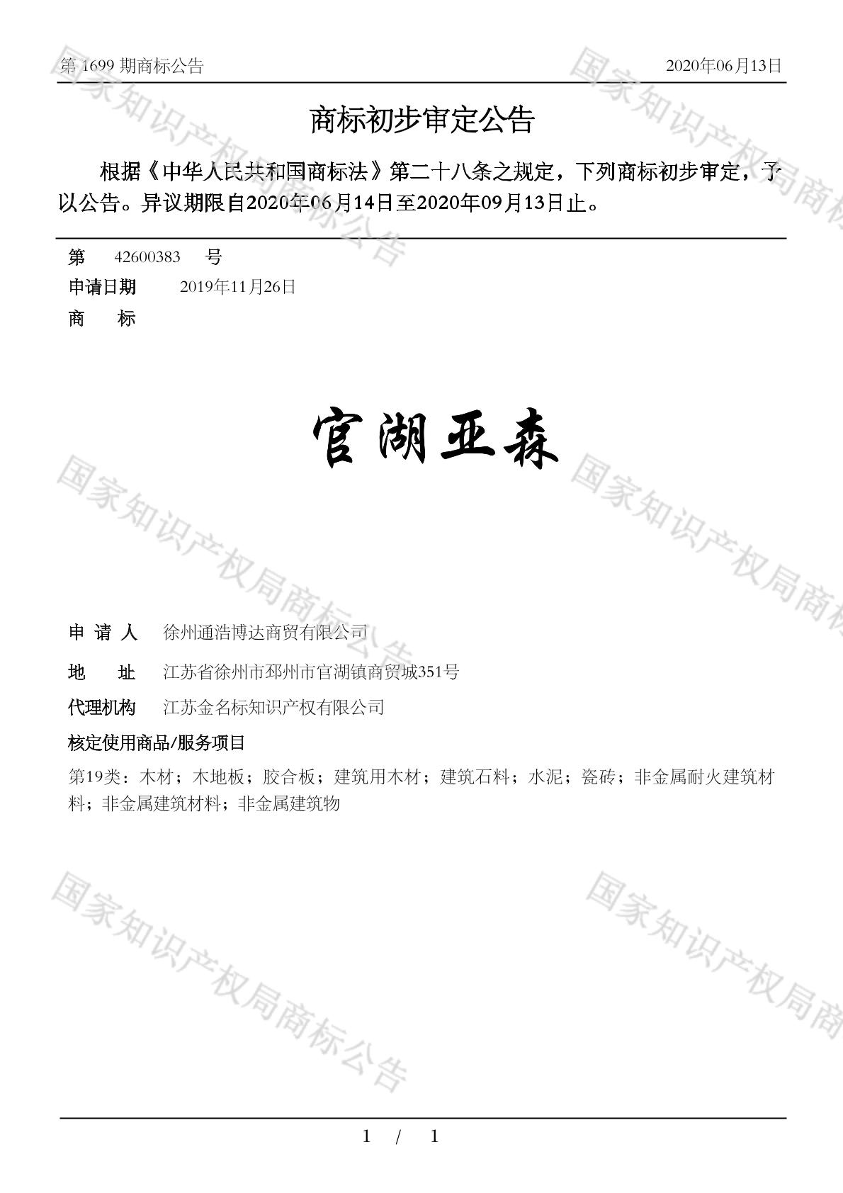 1901-建筑用木材;1901-木地板;1901-木材;1901-胶合板;1902-建筑石料;1904-水泥;1906-瓷砖;1907-非金属耐火建筑材料;1909-非金属建筑材料;1910-非金属建筑物 - 1699