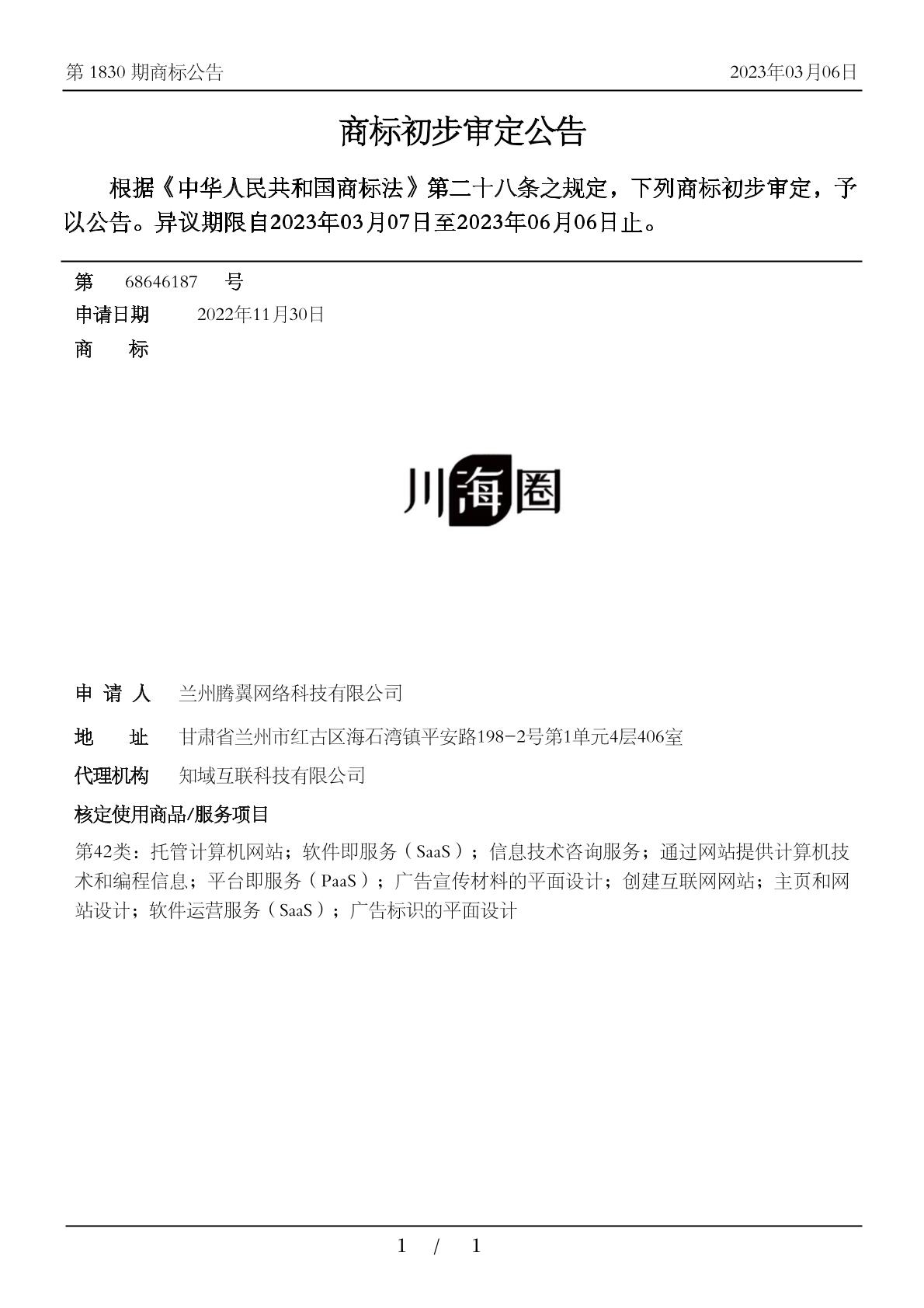 2023-01-13 商标注册申请 | 等待受理通知书发文