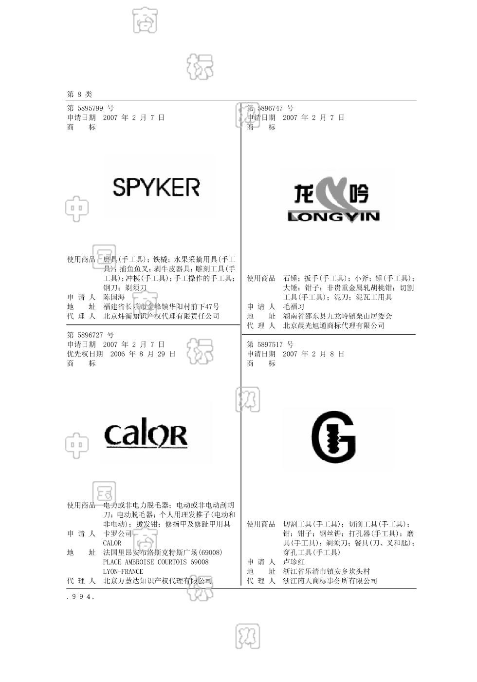 0807-切割工具(手工具);0807-大锤;0807-小斧;0807-扳手(手工具);0807-石锤;0807-钳子;0807-锤(手工具);0807-非贵重金属轧胡桃钳;0809-泥刀;0809-泥瓦工用具 - 1181