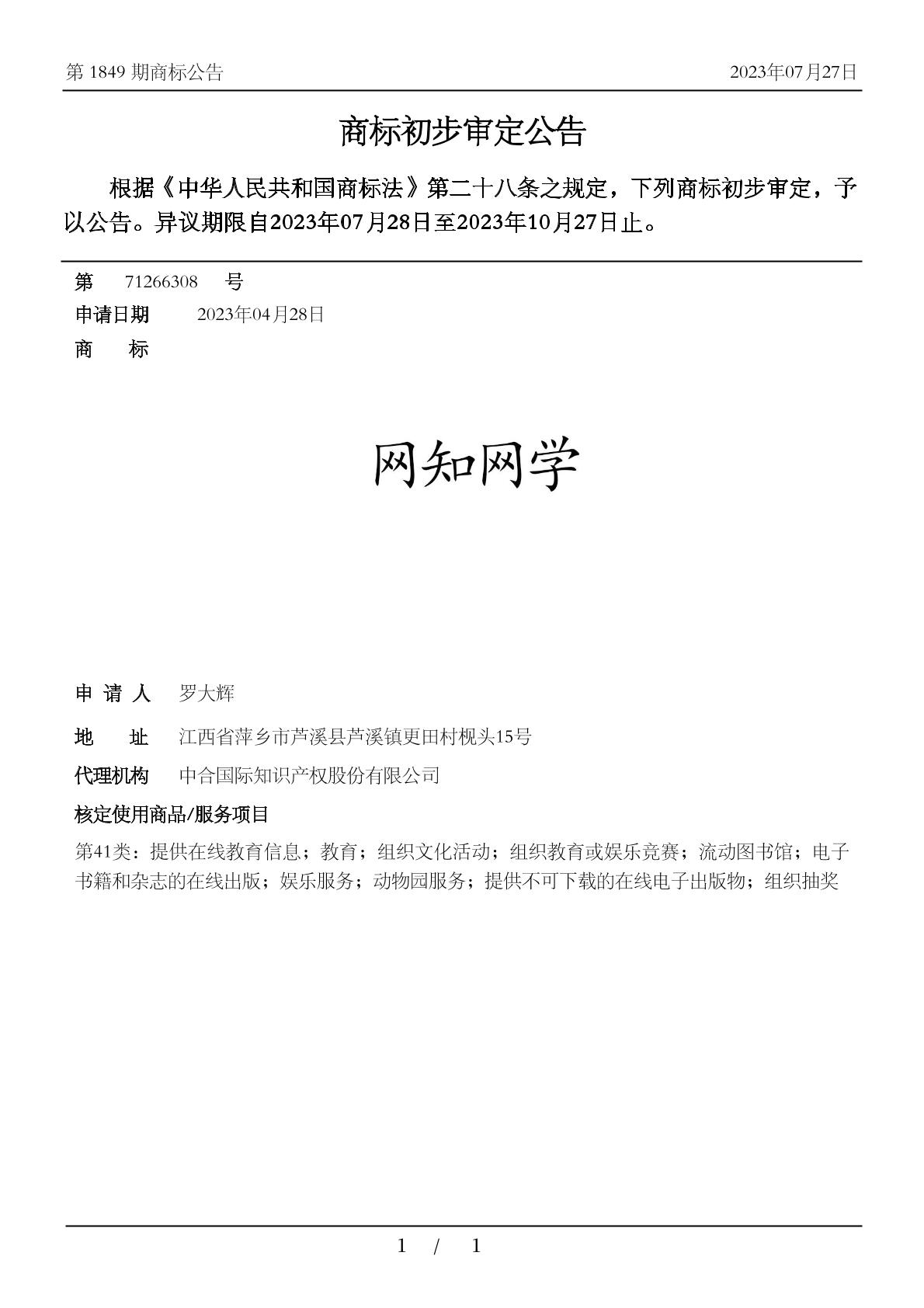 2023-11-17 商标异议申请 | 申请收文