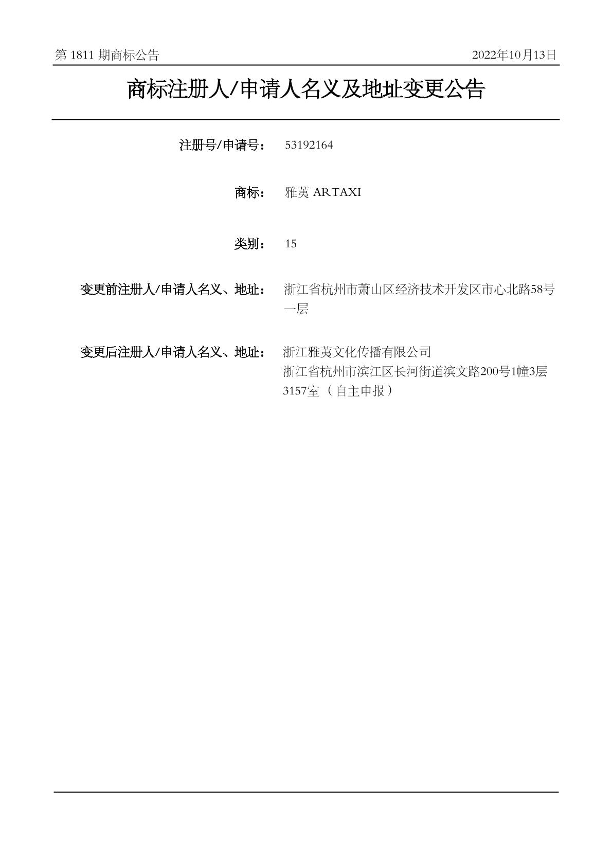 2022-10-11 变更商标申请人/注册人名义/地址 | 核准证明打印发送