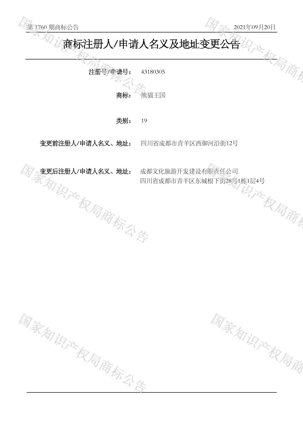 2021-09-15 变更商标申请人/注册人名义/地址 | 核准证明打印发送