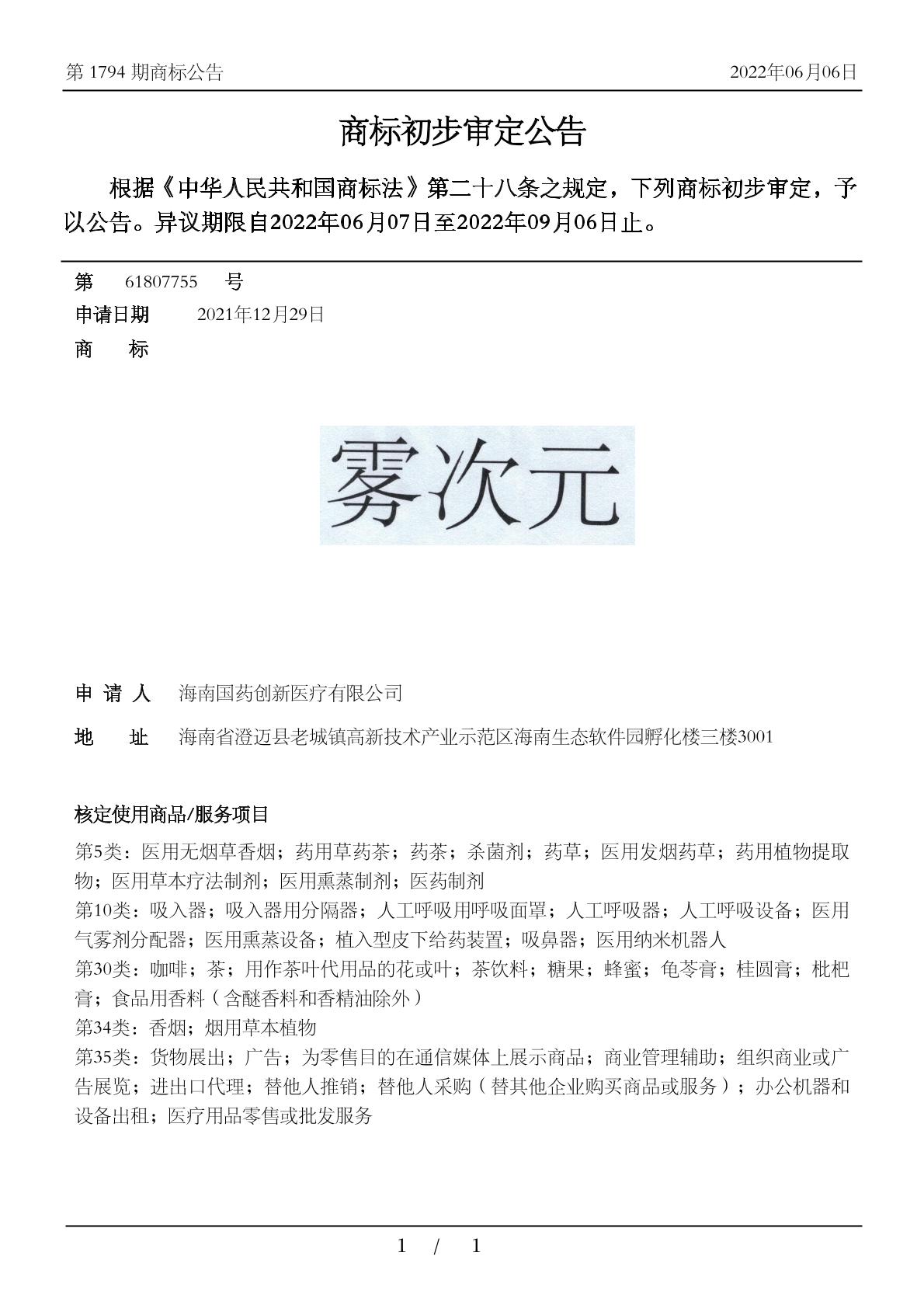 3401-烟用草本植物;3401-香烟;3402-吸烟者用口腔雾化器;3402-烟斗;3402-香烟烟嘴;3402-鼻烟壶;3406-除香精油外的烟草用调味品;3406-除香精油外的电子香烟用调味品;3407-电子香烟;3407-电子香烟烟液 - 1794