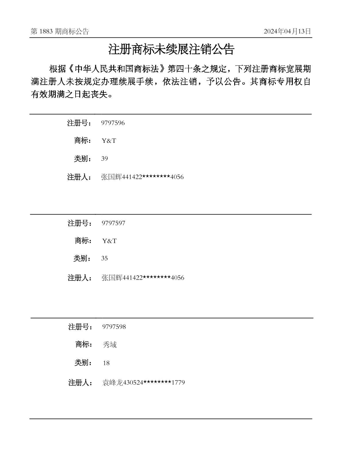 近期商标资讯