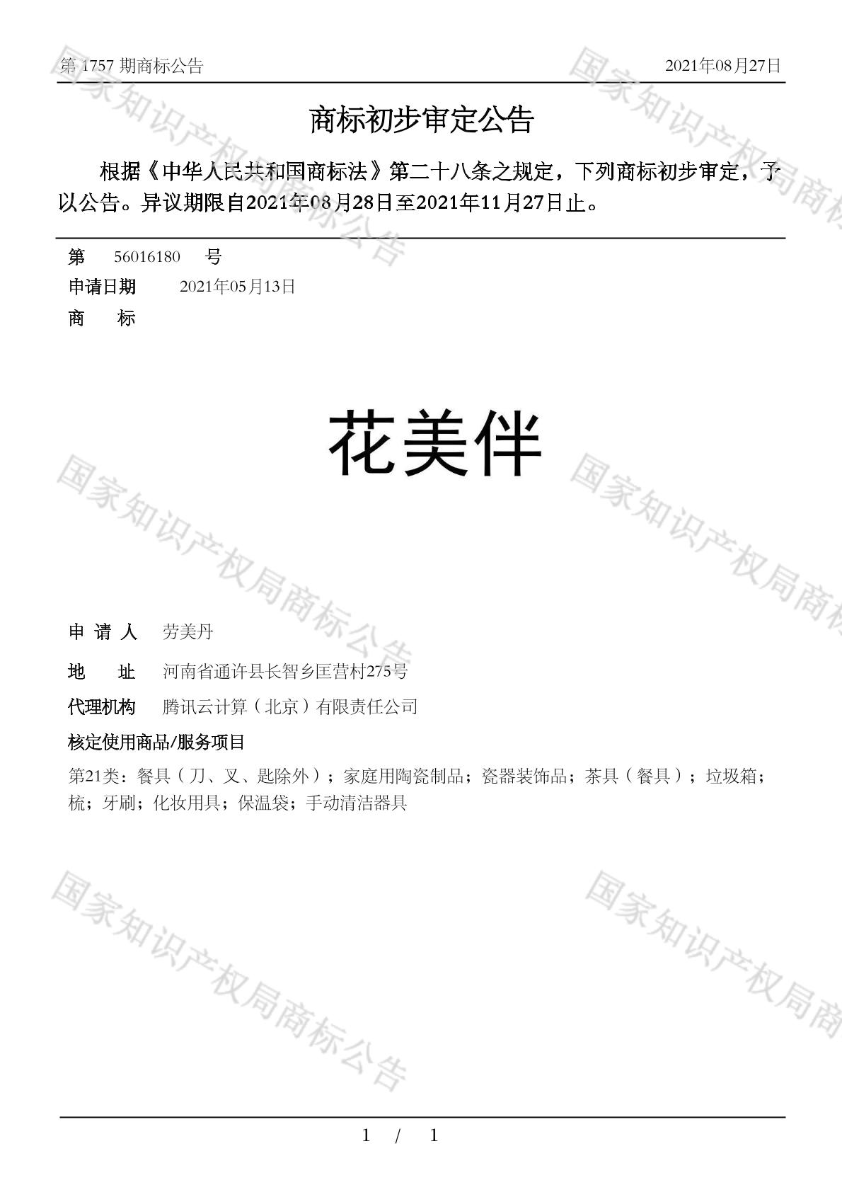 2101-餐具(刀、叉、匙除外);2103-家庭用陶瓷制品;2104-瓷器装饰品;2105-茶具(餐具);2106-垃圾箱;2107-梳;2108-牙刷;2110-化妆用具;2111-保温袋;2112-手动清洁器具 - 1757
