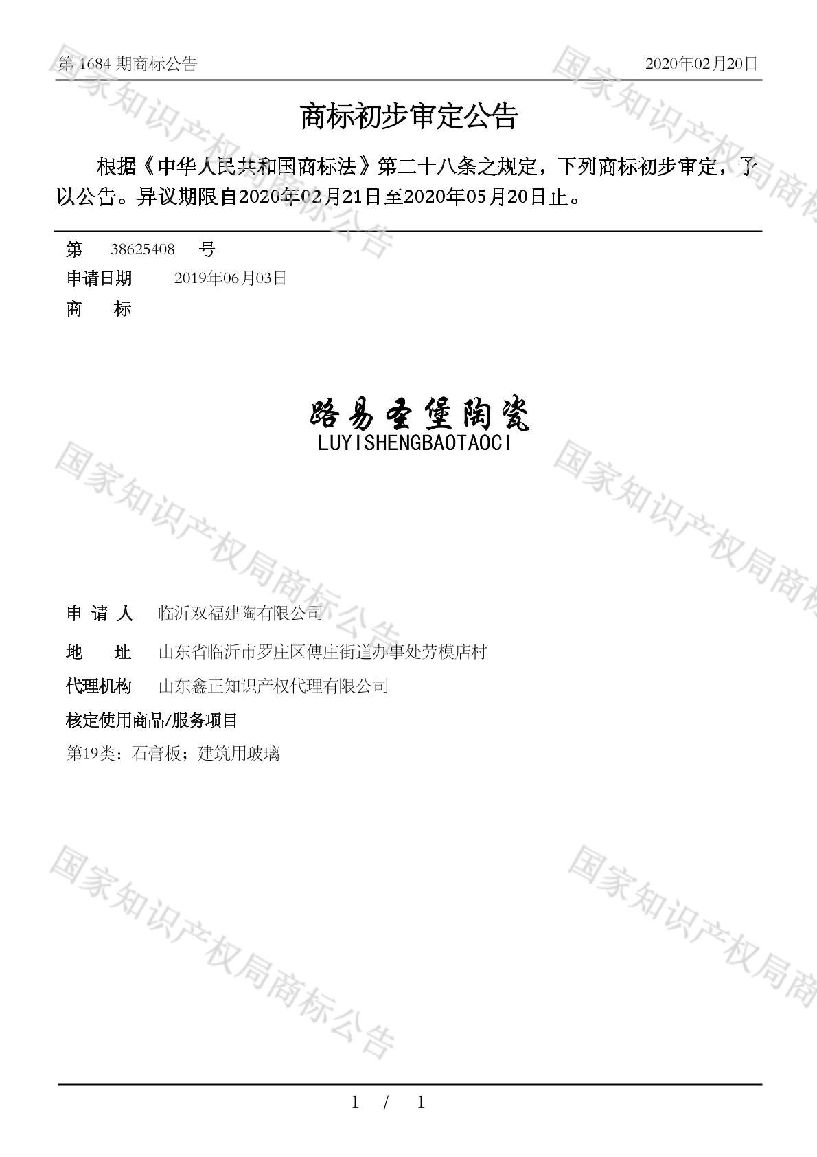 1901-木材;1902-大理石;1903-石膏板;1906-瓷砖;1906-非金属地板砖;1906-非金属墙砖;1906-非金属屋瓦;1909-非金属建筑材料;1910-非金属建筑物;1911-建筑用玻璃 - 1684