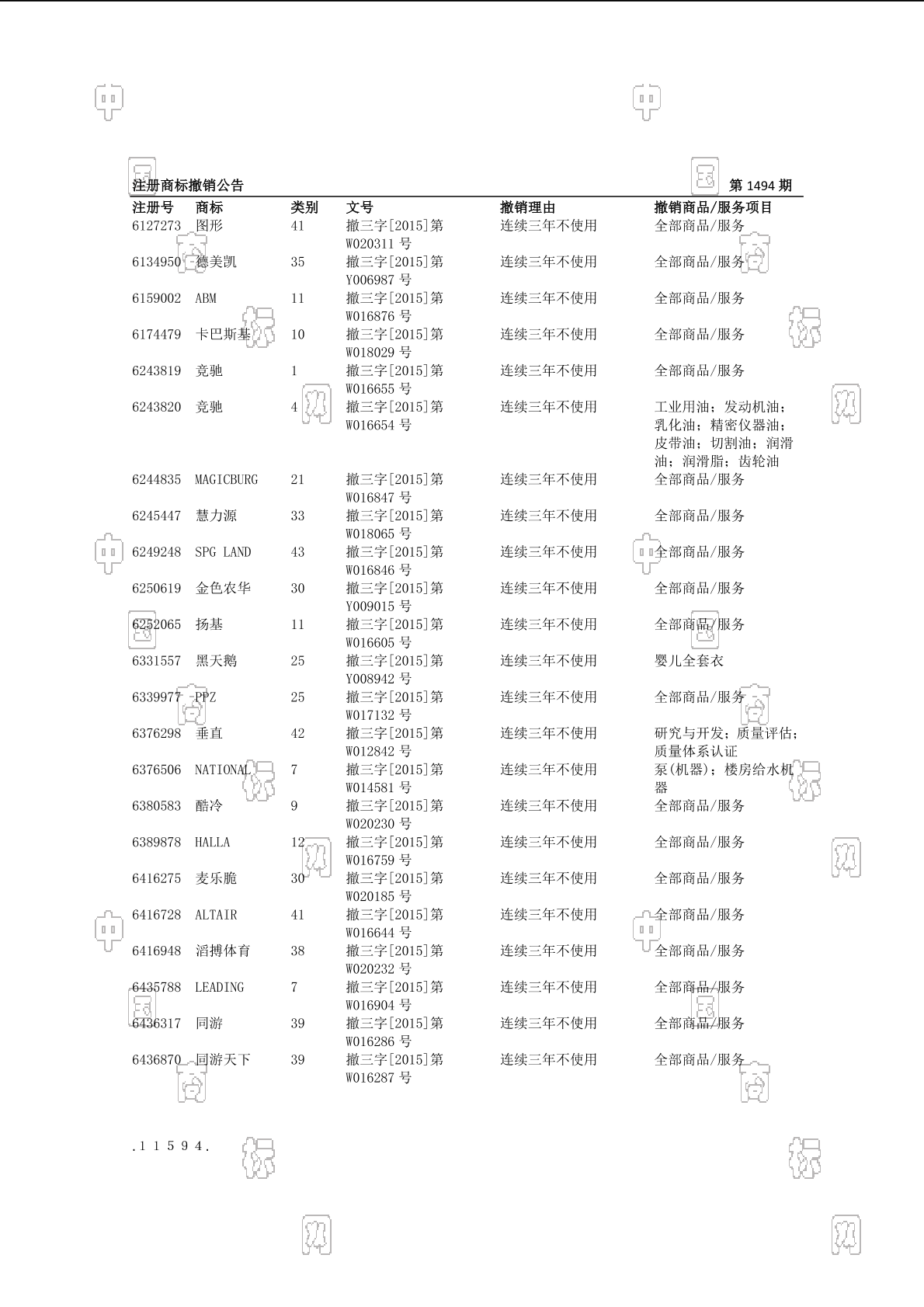 2015-11-09 撤销连续三年停止使用注册商标 | 撤销商标通知发文