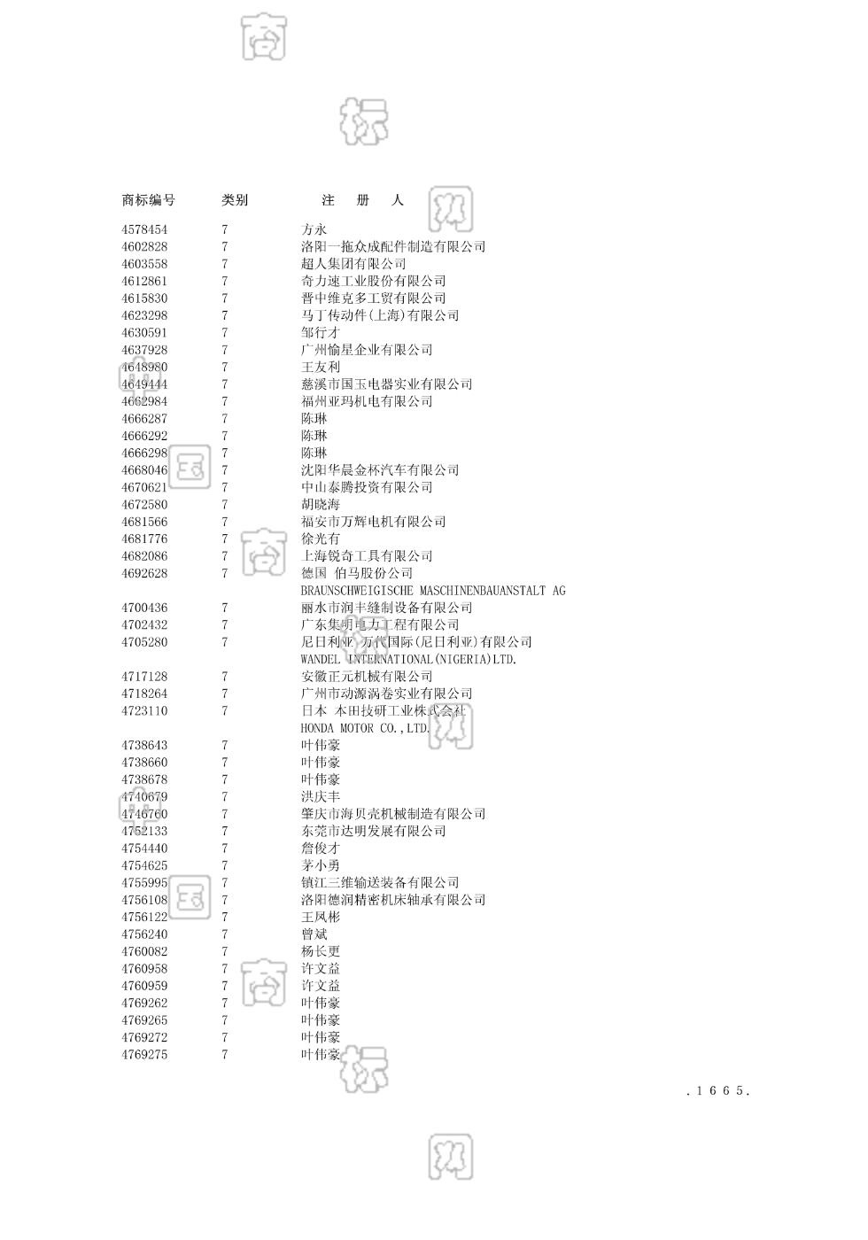 0713-缝纫机;0726-塑料工业用机器塑料切粒机;0729-化学工业用电动机械;0734-起重机;0738-柴油机;0743-电动扳手;0743-非手工操作手工具;0749-压缩机(机器);0749-泵(机器);0749-阀(机器零件) - 1125