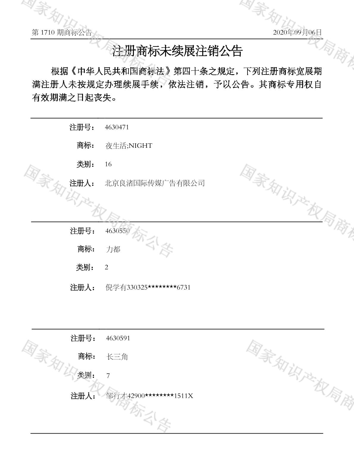 2020-09-07 期满未续展注销商标 | 排版未续展注销公告