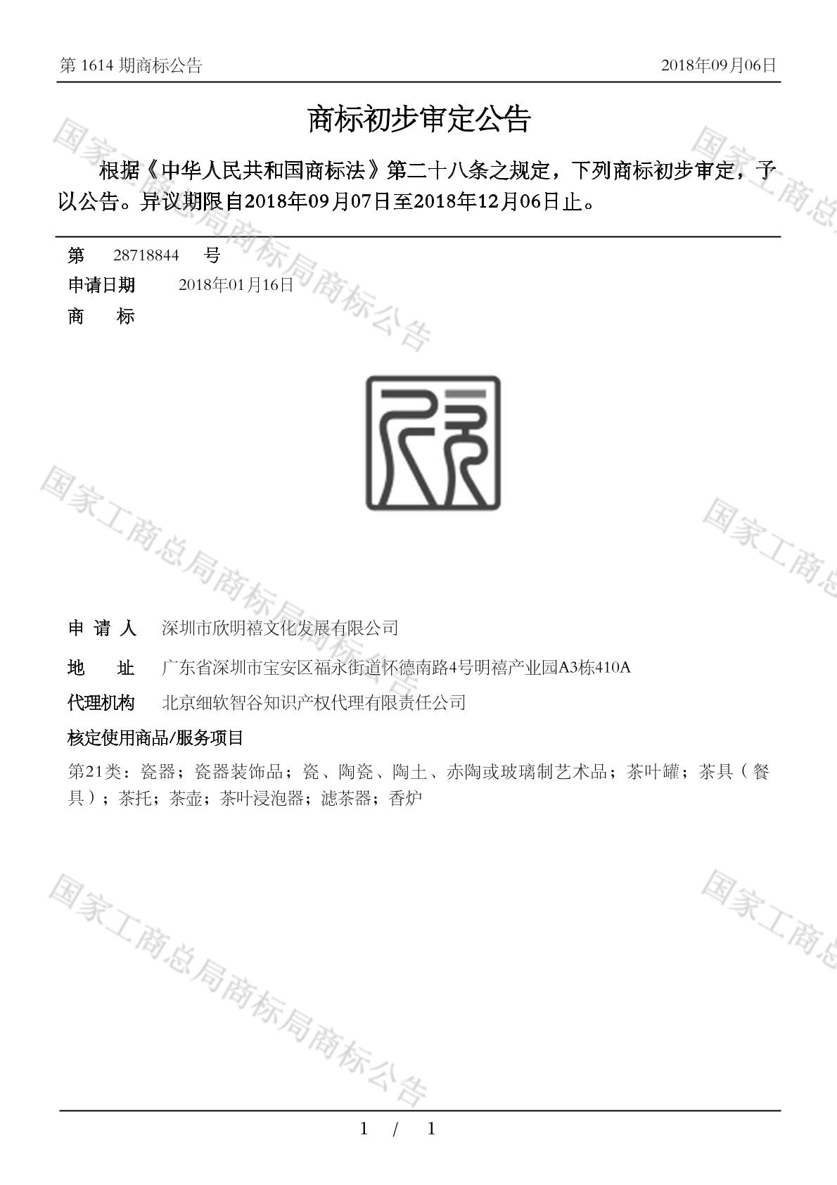 2103-瓷器;2104-瓷、陶瓷、陶土、赤陶或玻璃制艺术品;2104-瓷器装饰品;2105-滤茶器;2105-茶具(餐具);2105-茶叶浸泡器;2105-茶叶罐;2105-茶壶;2105-茶托;2106-香炉 - 1614