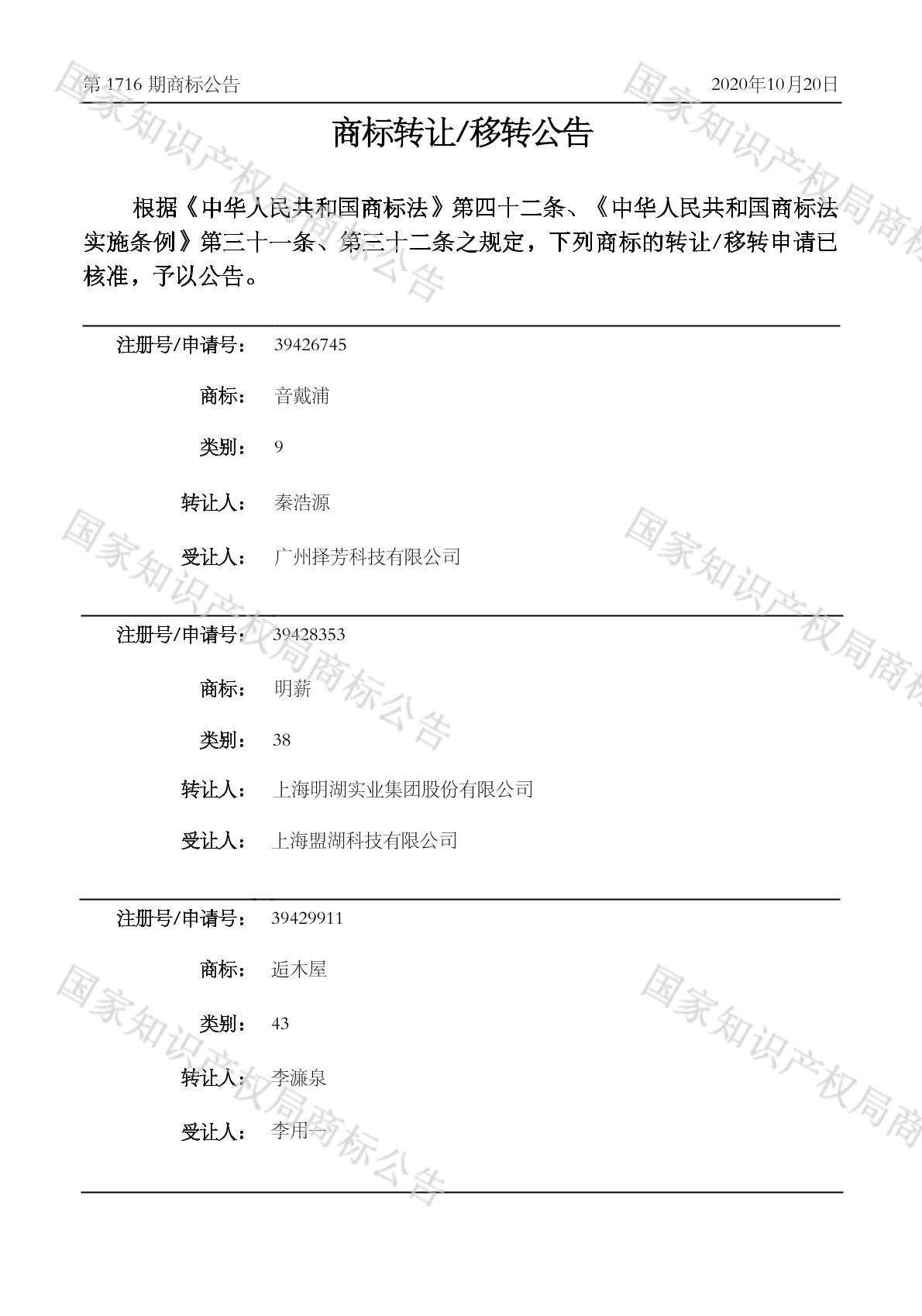 2020-05-12 商标转让 | 申请收文