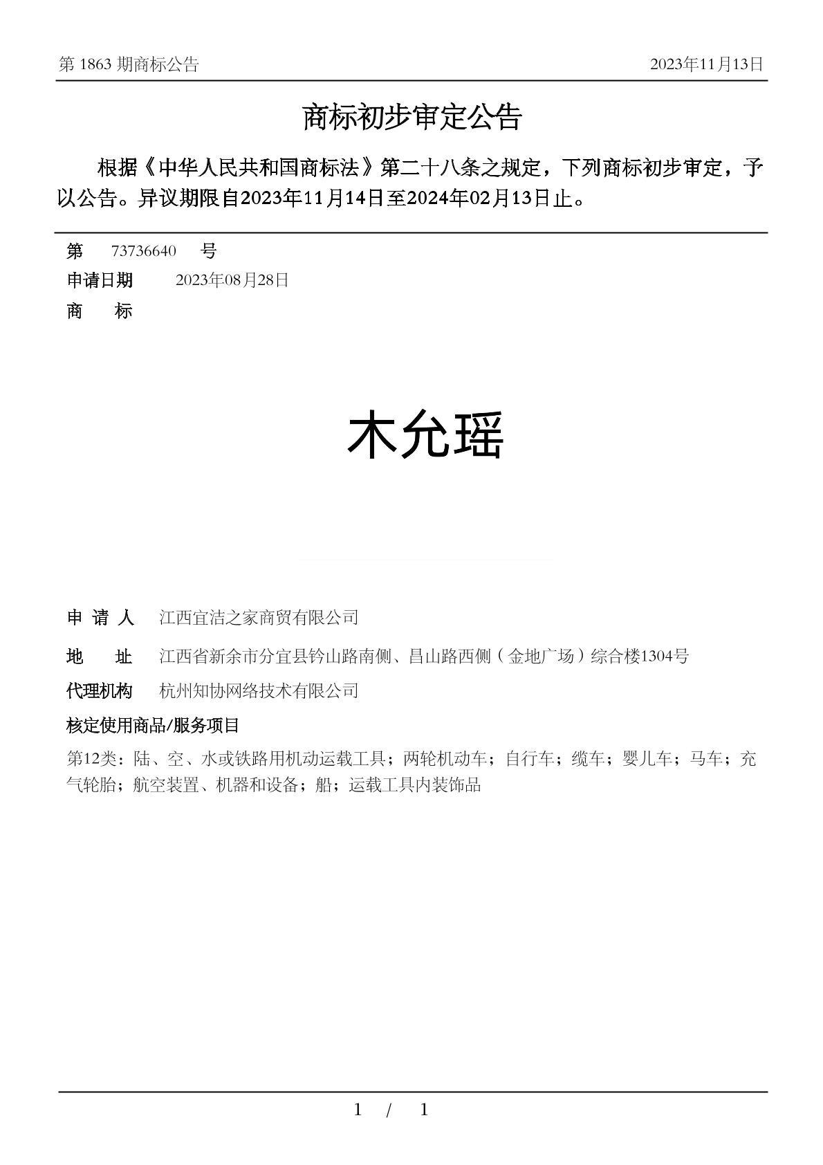 【木允瑶】商标详情