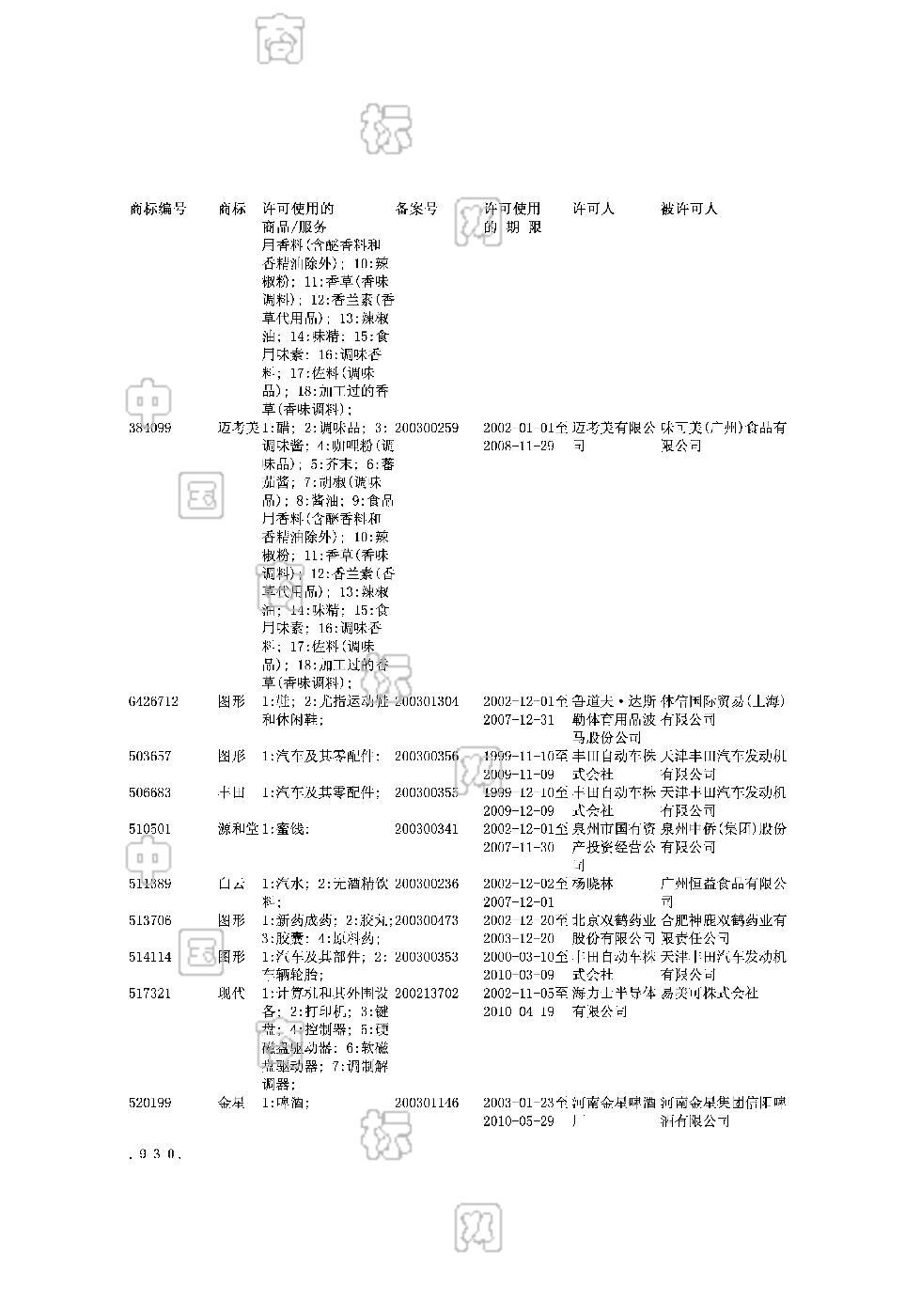 商标使用许可备案公告 2003-03-14 第871期 查看公告