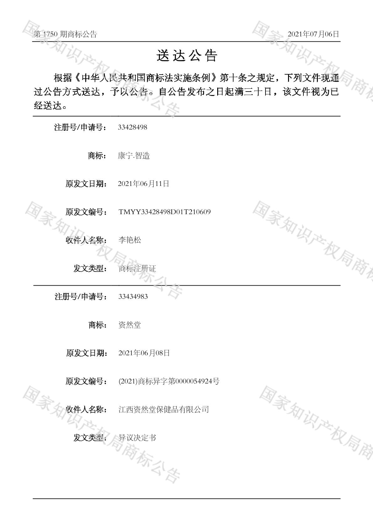 2021-07-07 商标异议申请 | 排版送达公告(异议决定书)