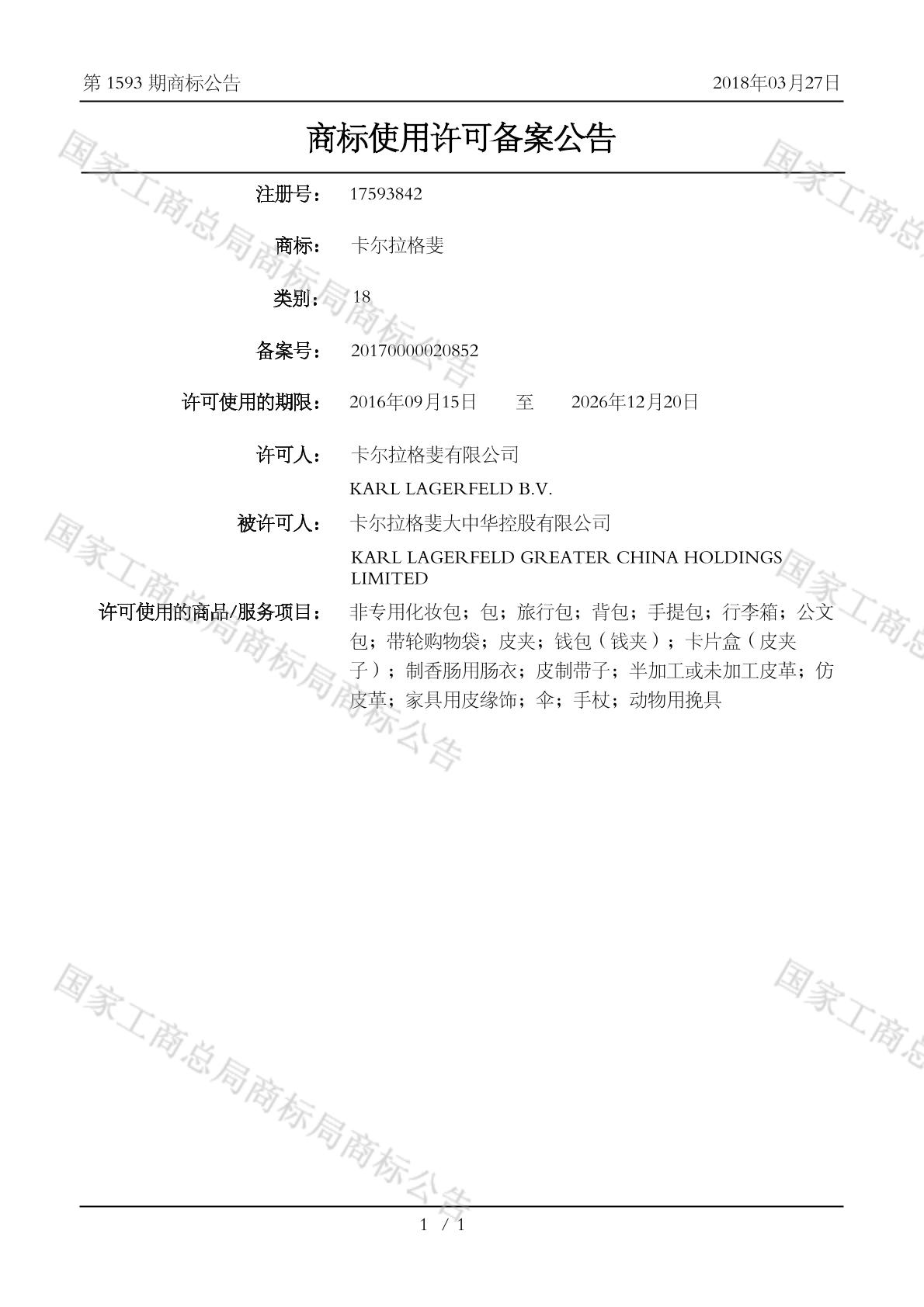 2018-03-28 商标使用许可备案 | 核准通知书打印发送