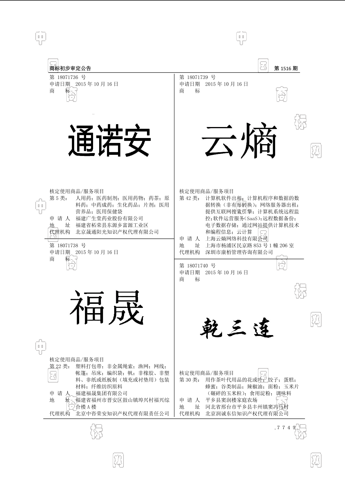 2016-01-22 商标注册申请 | 等待受理通知书发文