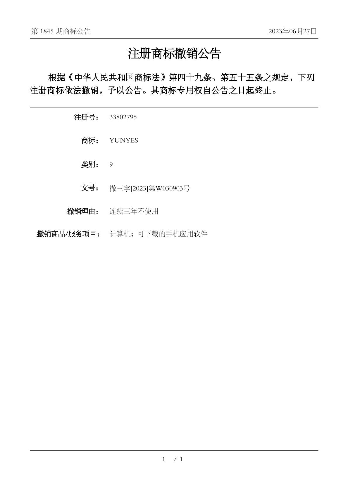 2023-07-06 撤销连续三年停止使用注册商标 | 注册证发文