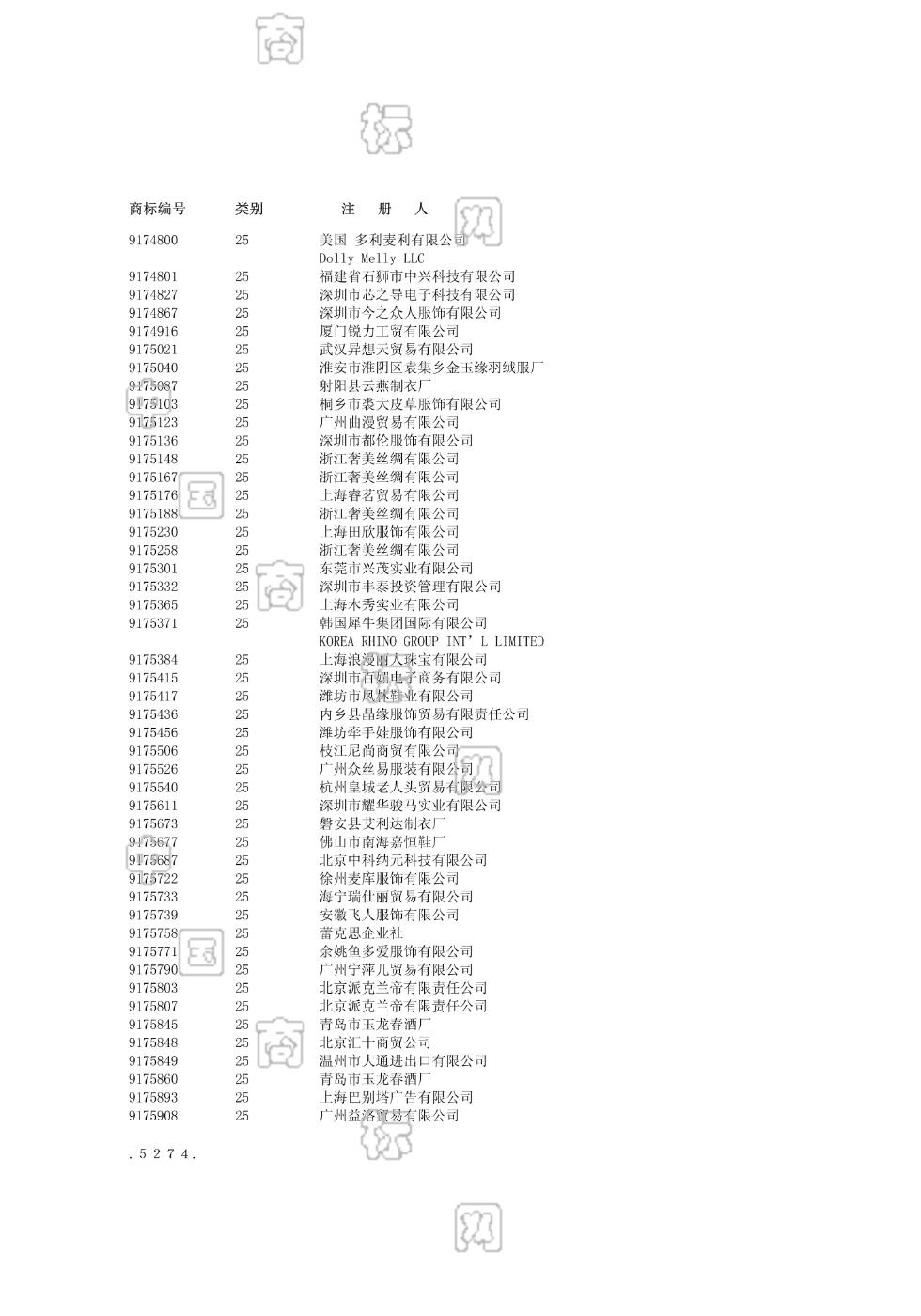 2501-服装;2502-婴儿全套衣;2503-游泳衣;2506-足球鞋;2507-鞋;2508-帽;2509-袜;2510-手套(服装);2511-领带;2512-皮带(服饰用) - 1291
