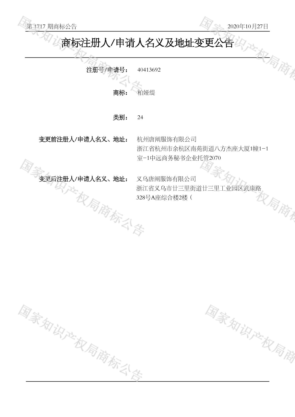 2020-10-13 变更商标申请人/注册人名义/地址 | 核准证明打印发送