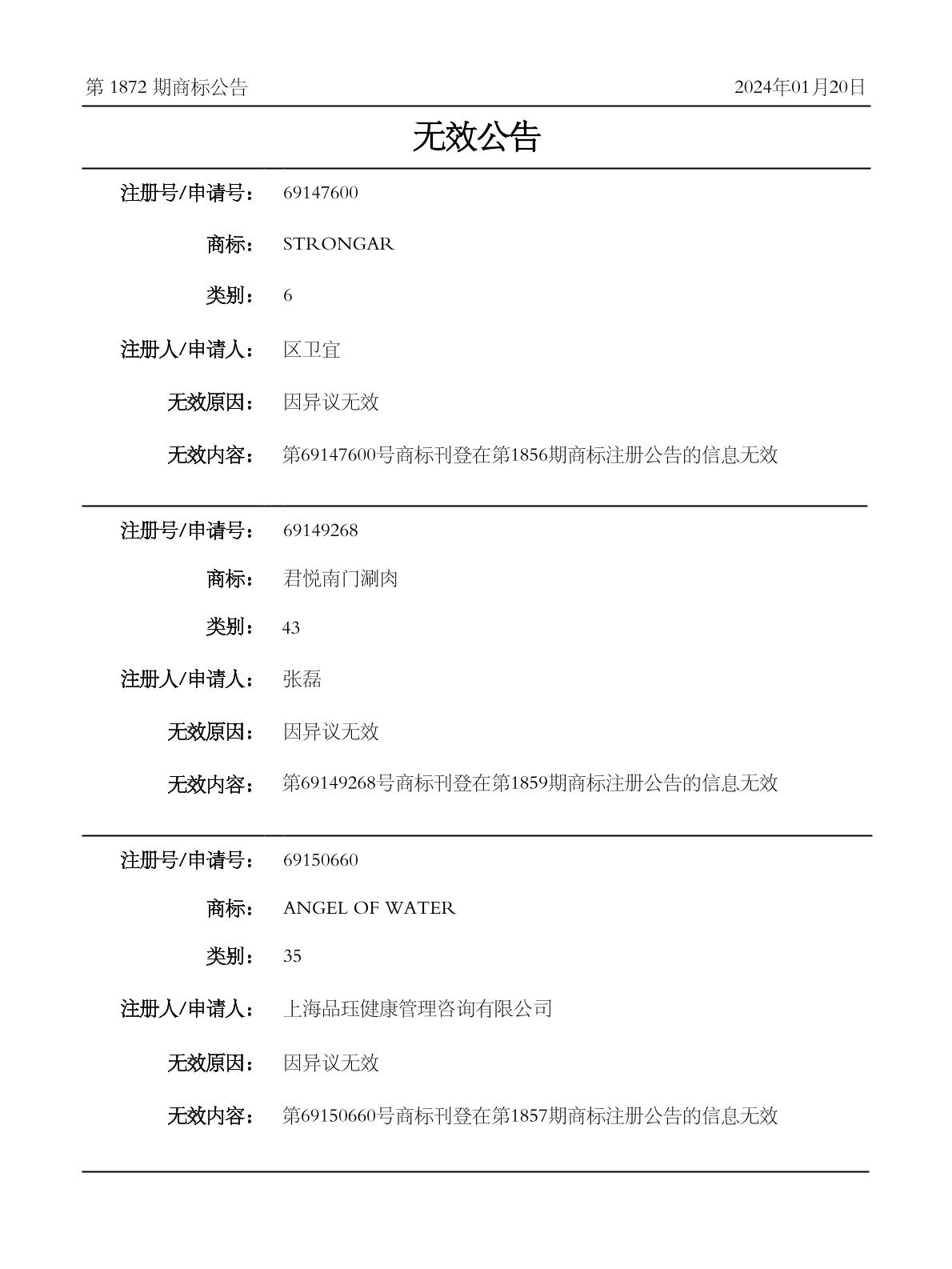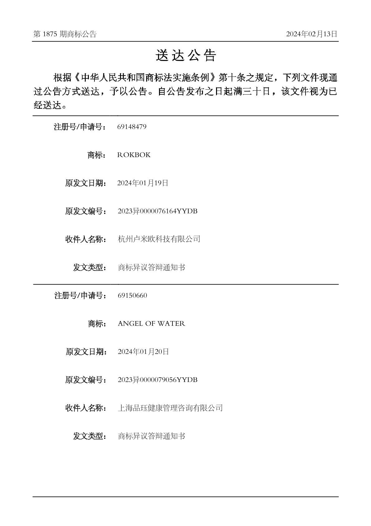 2024-02-18 商标异议申请 | 排版送达公告