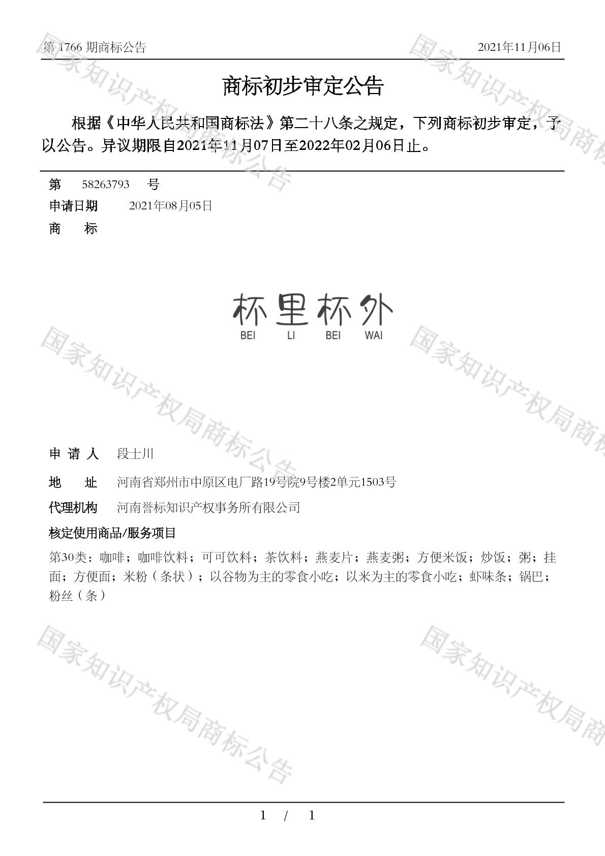 3001-可可饮料;3001-咖啡;3001-咖啡饮料;3002-茶饮料;3006-以米为主的零食小吃;3006-以谷物为主的零食小吃;3006-燕麦片;3006-燕麦粥;3007-方便米饭;3007-炒饭;3007-粥;3009-挂面;3009-方便面;3009-米粉(条状);3010-以米为主的零食小吃;3010-以谷物为主的零食小吃;3010-虾味条;3010-锅巴;3012-粉丝(条) - 1766