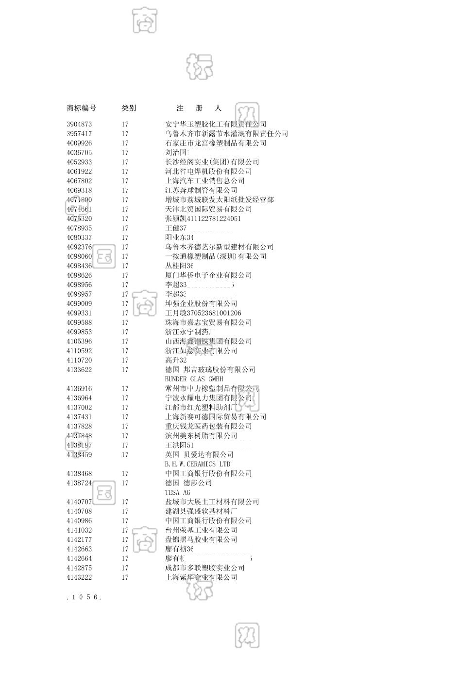1701-生橡胶或半成品橡胶;1702-非文具、非家用、非医用胶带;1703-半加工塑料物质;1703-生橡胶或半成品橡胶;1704-非金属软管;1705-保温用非导热材料;1705-隔音材料;1706-绝缘材料;1707-橡胶或塑料制填充材料 - 1058