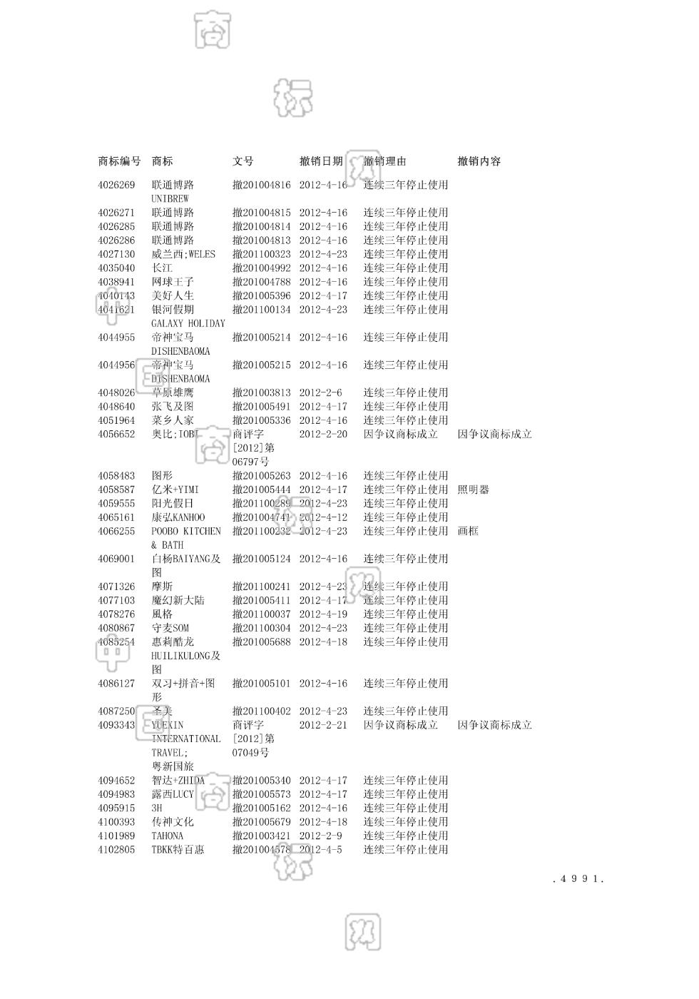 2011-02-23 撤销连续三年停止使用注册商标 | 等待打印补正通知