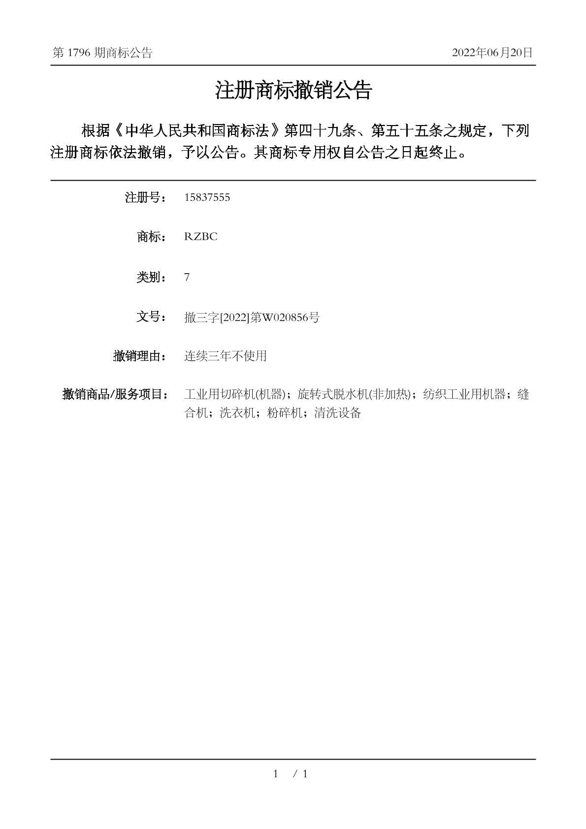 2022-07-04 撤销连续三年停止使用注册商标 | 注册证发文