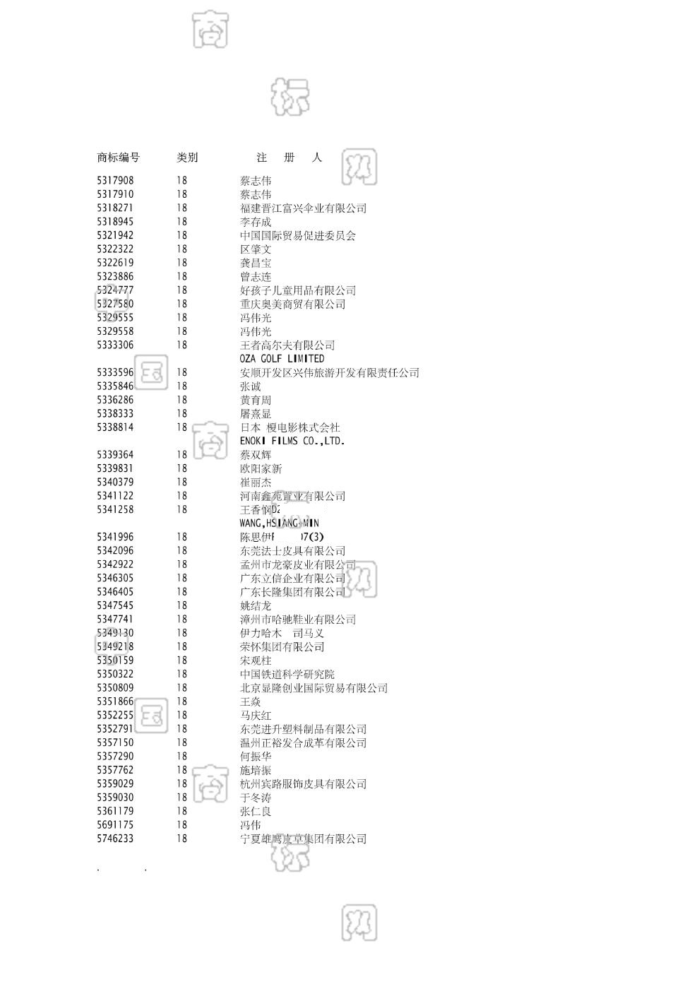 1801-仿皮;1802-书包;1802-手提包;1803-裘皮;1804-伞;1804-伞柄;1804-雨伞或阳伞伞架;1805-手杖;1806-动物项圈;1807-香肠肠衣 - 1220