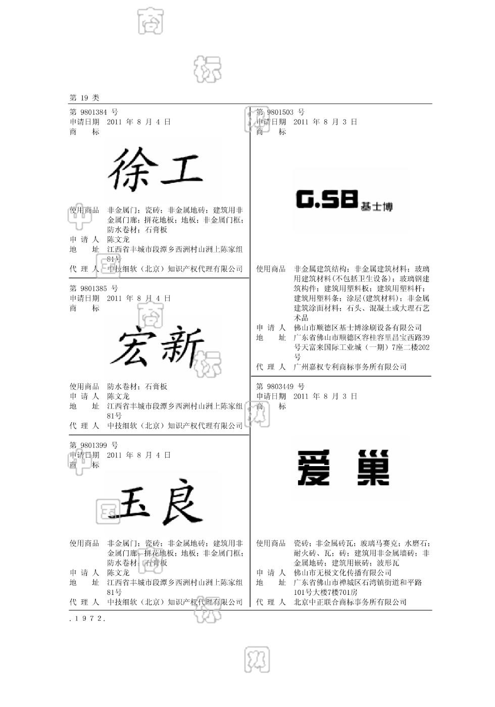 1901-地板;1903-石膏板;1906-瓷砖;1906-非金属地砖;1908-防水卷材;1909-建筑用非金属门廊;1909-拼花地板;1909-非金属水管;1909-非金属门;1909-非金属门框 - 1325