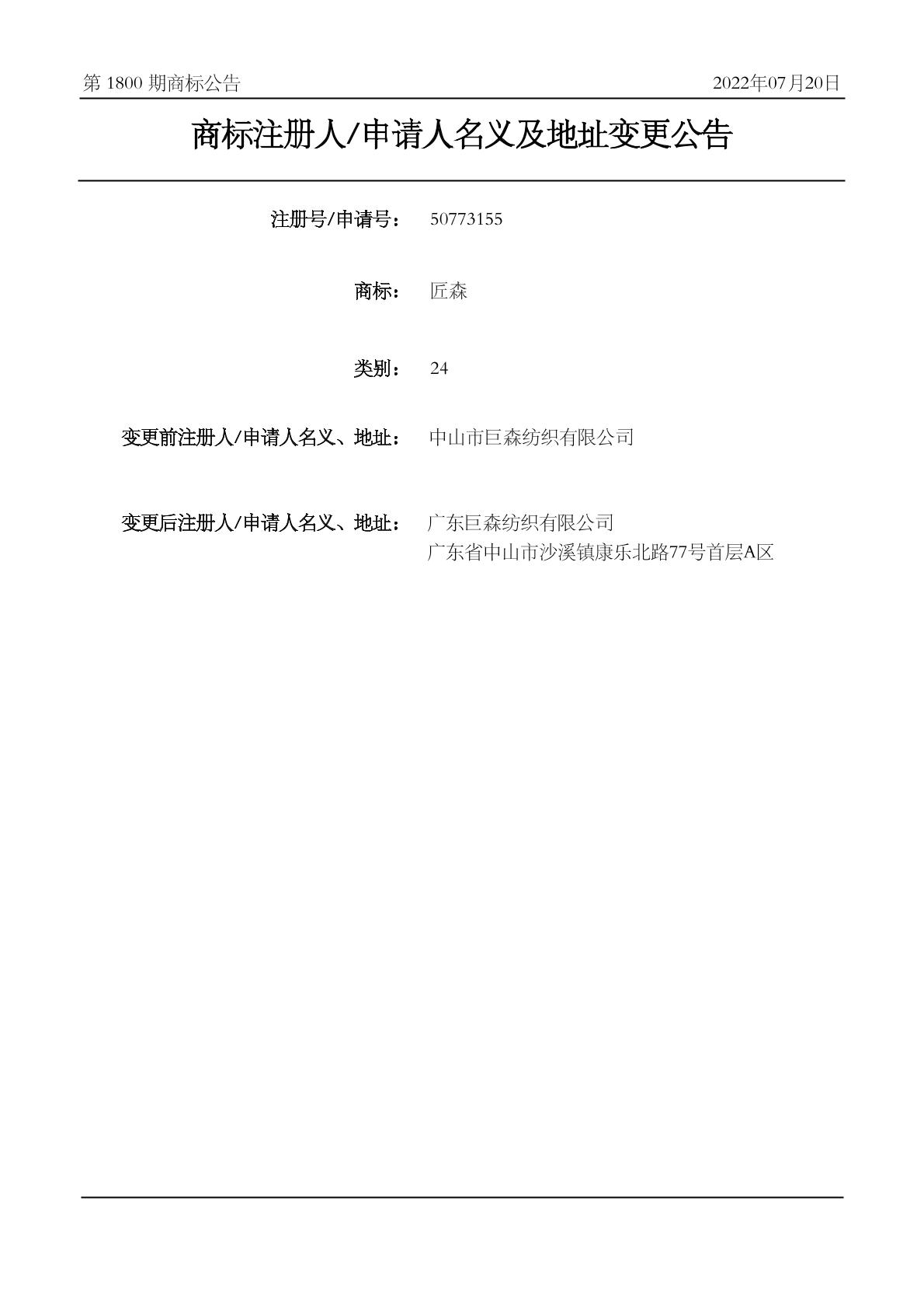 2022-07-13 变更商标申请人/注册人名义/地址 | 核准证明打印发送