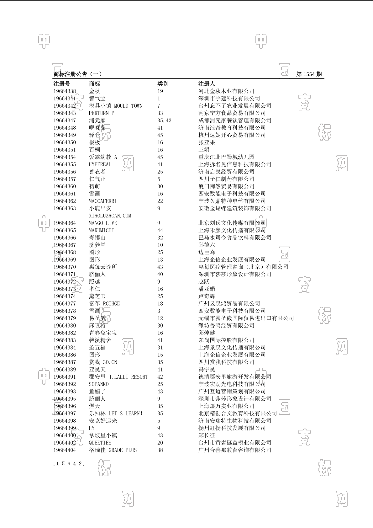 1601-纸;1602-复写纸;1603-纸巾;1604-纸或纸板制广告牌;1605-笔记本;1606-印刷出版物;1607-平版印刷工艺品;1609-包装纸;1611-文具;1614-钢笔(办公用品) - 1542