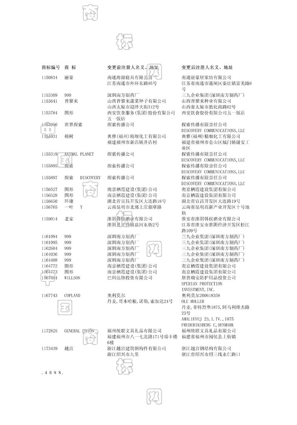 商标注册人申请人名义及地址变更公告 2009-07-06 第1174期 查看公告
