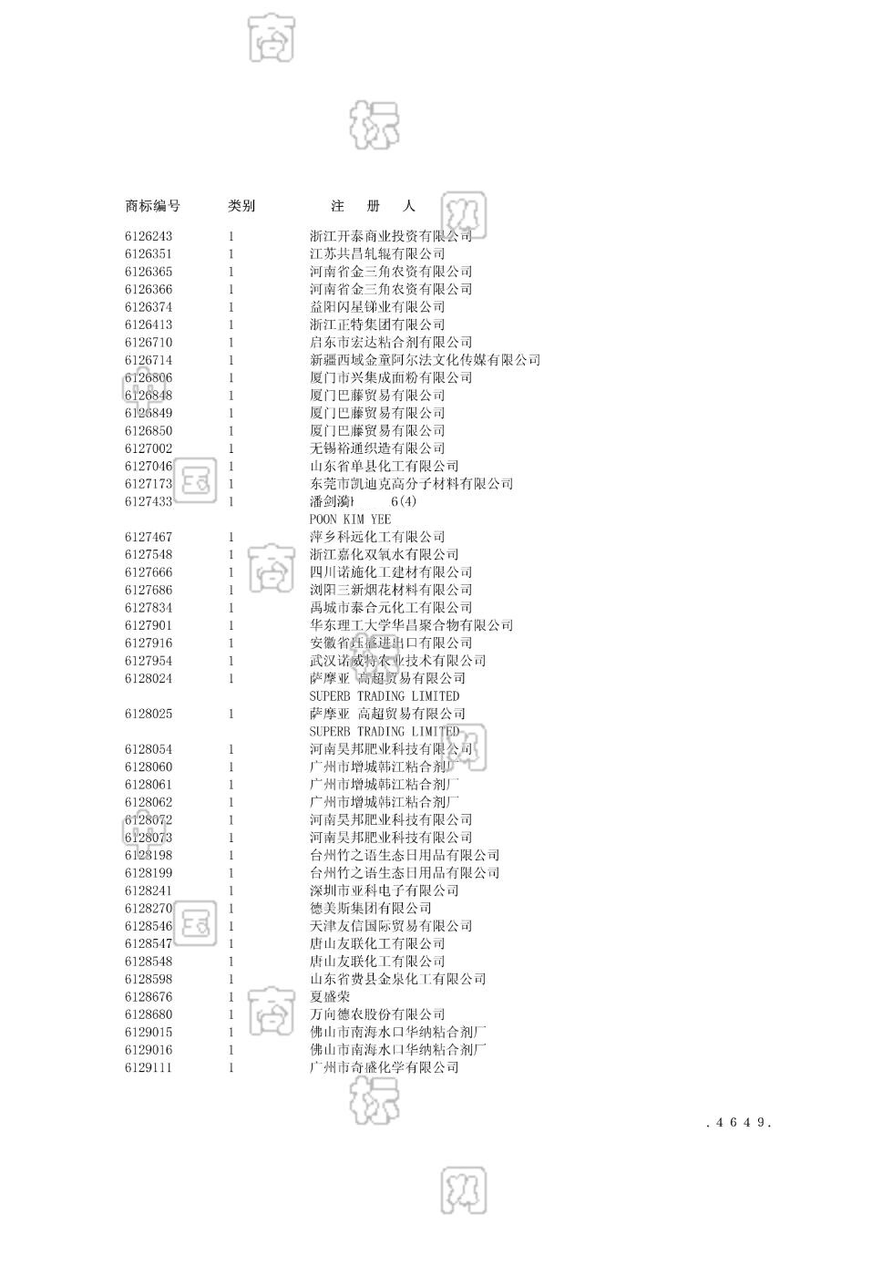 0101-工业用石墨;0104-制造颜料用化学制剂;0106-生物化学催化剂;0107-照像用还原剂;0108-合成树脂塑料;0109-肥料;0110-防火制剂;0112-焊接用化学品;0114-皮革表面处理用化学品;0115-工业用粘合剂 - 1192