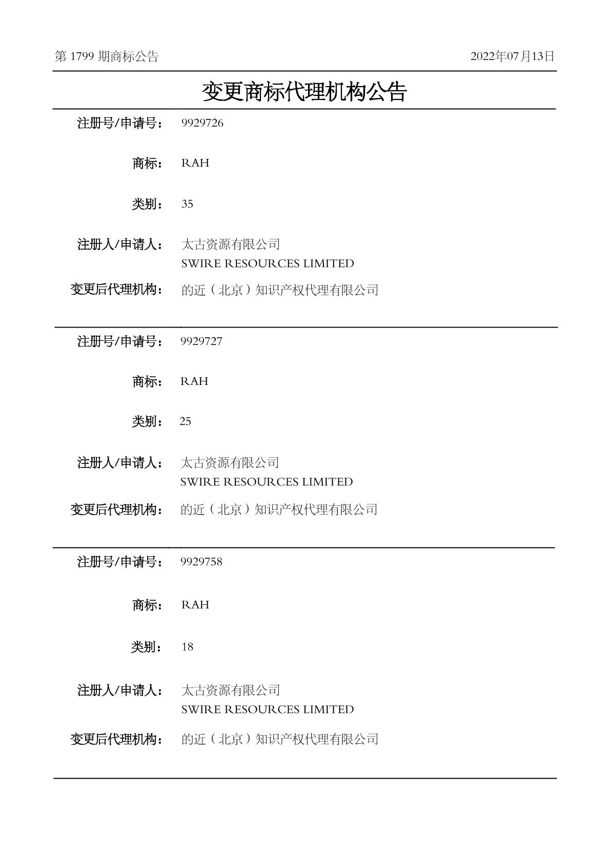 2022-07-06 变更商标代理人 | 核准通知打印发送
