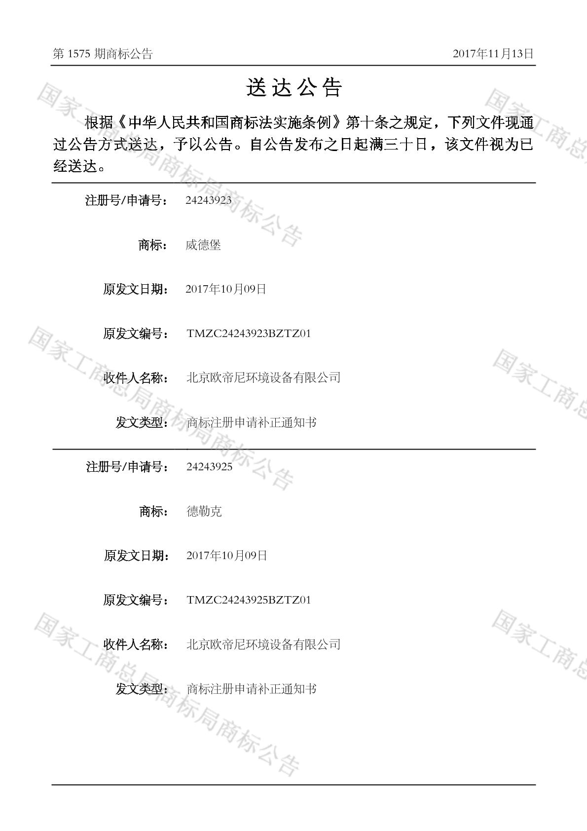 2017-12-05 商标注册申请 | 排版送达公告(商标注册申请补正通知书)