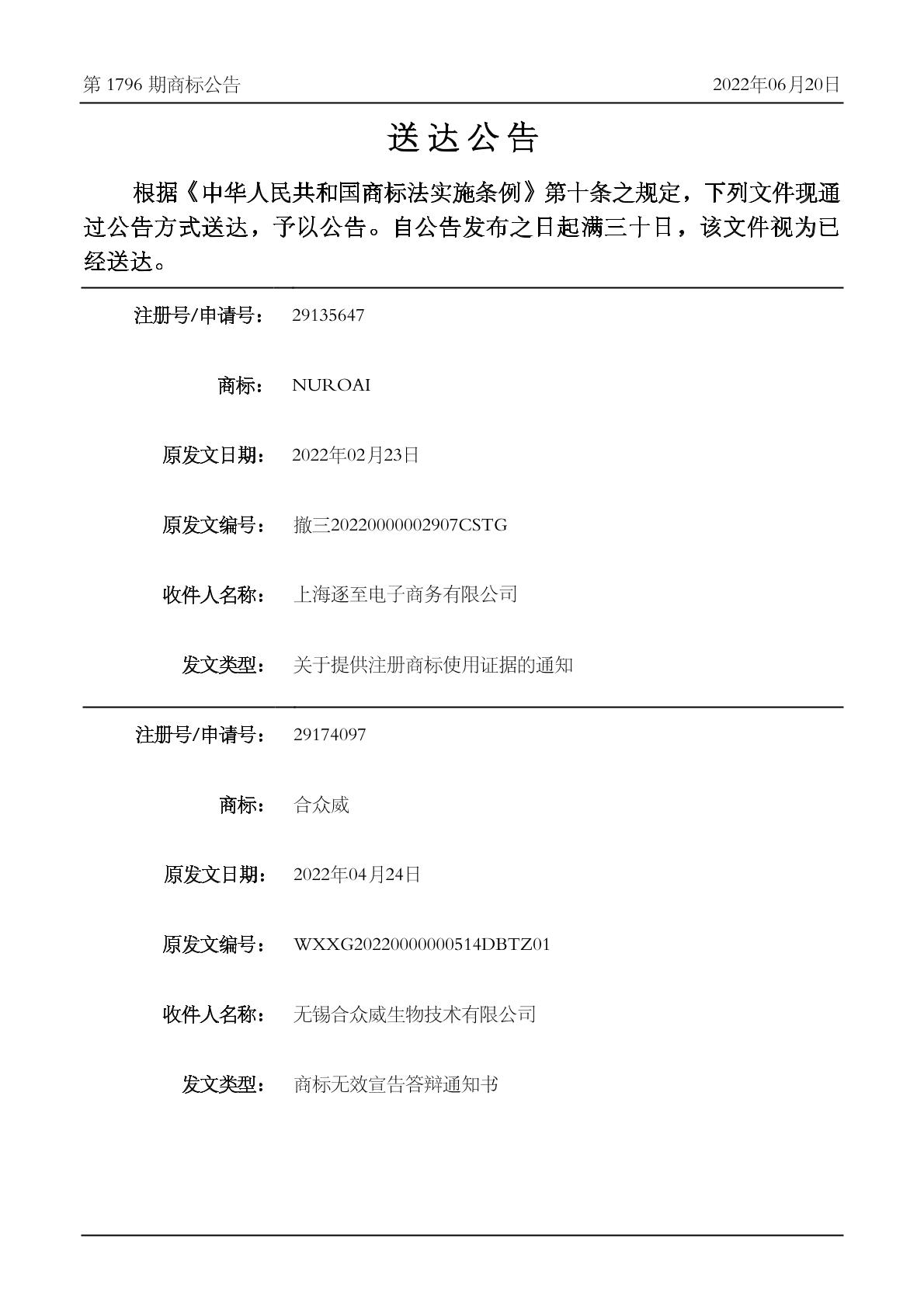2022-06-20 撤销连续三年停止使用注册商标 | 排版送达公告(关于提供注册商标使用证据的通知)