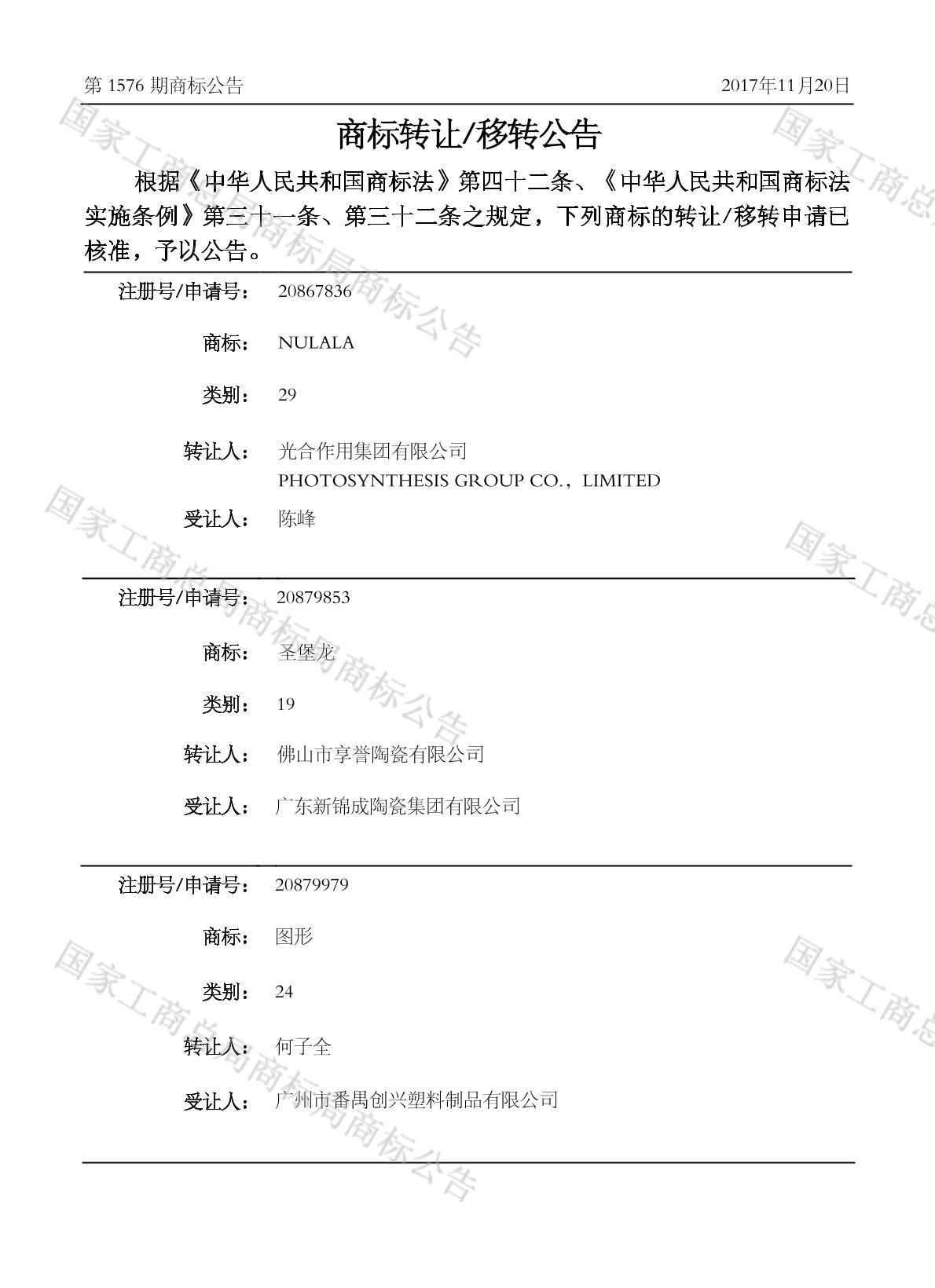 2017-12-07 商标转让 | 核准证明打印发送