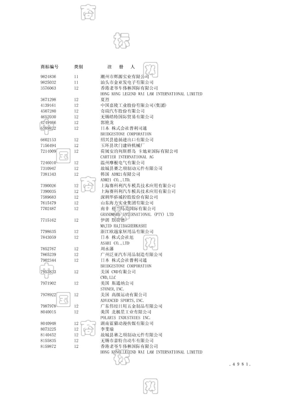 1202-汽车(车辆);1202-汽车组合开关;1202-车辆减震器;1202-车辆喇叭;1202-车辆汽油油箱盖;1202-车辆转向信号灯;1202-车辆防盗设备;1202-陆地车辆传动马达;1202-风挡刮水器;1208-汽车轮胎 - 962